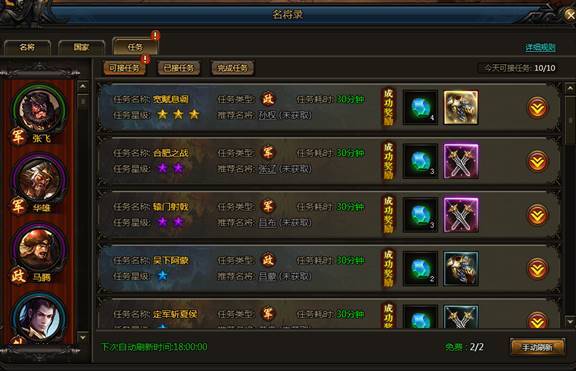 名将录任务规则: