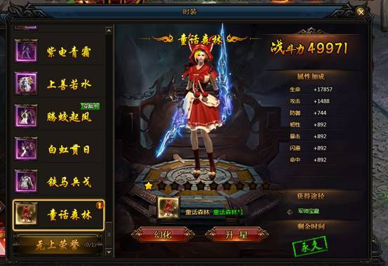 时装升星可获得属性